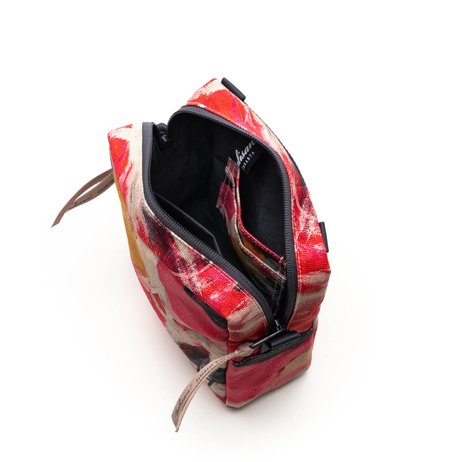 An artisanal accessories collection crafted using sustainable digital print technology on natural cotton canvas. Since 2010, we have been publishing limited-edition artwork through the manual serigraphy technique. Each piece embodies a semiotic appreciation of simple matters, brought to life by an ardent labour of love in sewing and hand-pulled printing. Unlike our traditional serigraphy collection, this collection captures super-fine, colourful impressions with reactive inks, allowing our canvas to convey a sense of time, movement, or spaces.